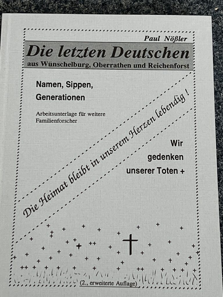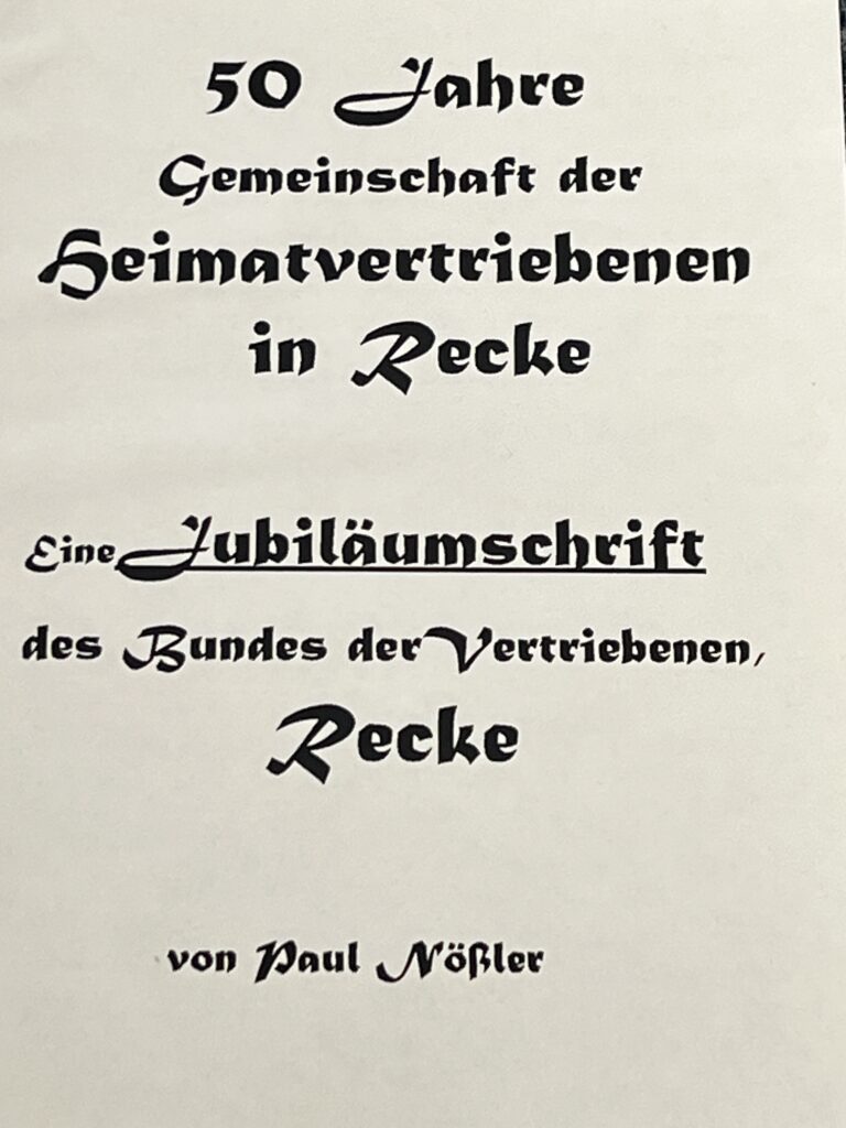 Die Heimatgemeinschaft Altwilmsdorf hat aus dem Nachlass von Luzia und Paul Nößler mehrere Bücher übergeben. Es handelt sich um Schriften, die Paul Nößler erstellt hat, z.B. „50 Jahre Gemeinschaft der Heimatvertriebenen in Recke“, „Der Krieg in Steinbeck vor 50 Jahren“, „Die letzten Deutschen aus Wünschelburg“, „Chronologische Geschehnisse aus und um Altwilmsdorf“ „Die Heimatgemeinschaft Altwilmsdorf und die Patenschaft der Gemeinde Recke über die verstreut lebenden Altwilmsdorfer“, erschienen 2021 zu 75-Jahre Vertreibung.