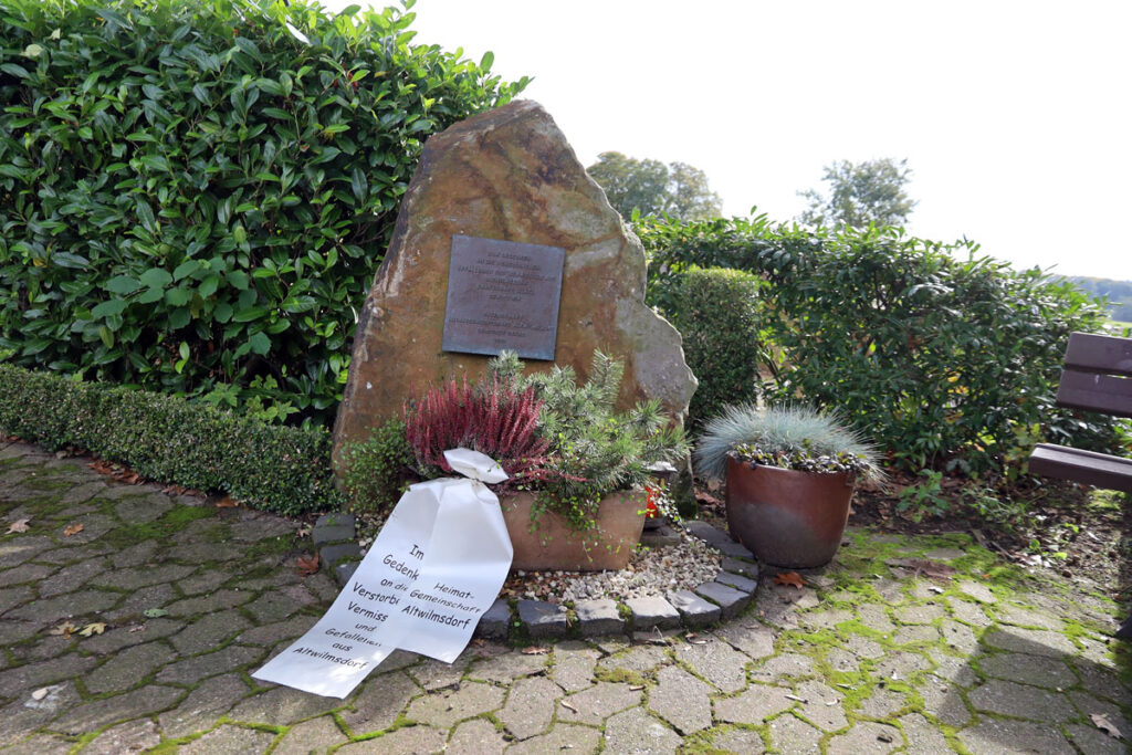 Am Samstag, 12.10.2024 hat die Heimatgemeinschaft Altwilmsdorf mit ihren Gästen aus dem Recker Gemeinderat und dem Heimatverein Recke am Gedenkstein im Bürgerpark Steinbeck der Gefallenen, Vermissten und verstorbenen aus Altwilmsdorf gedacht.